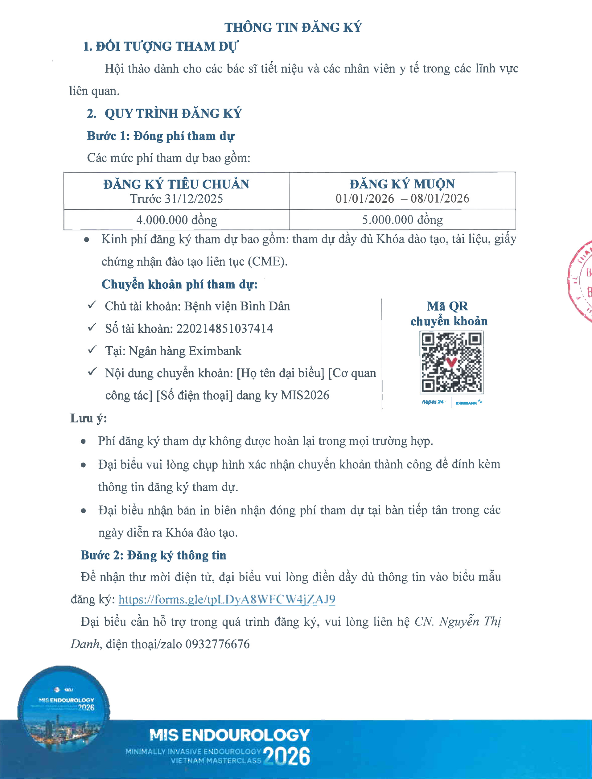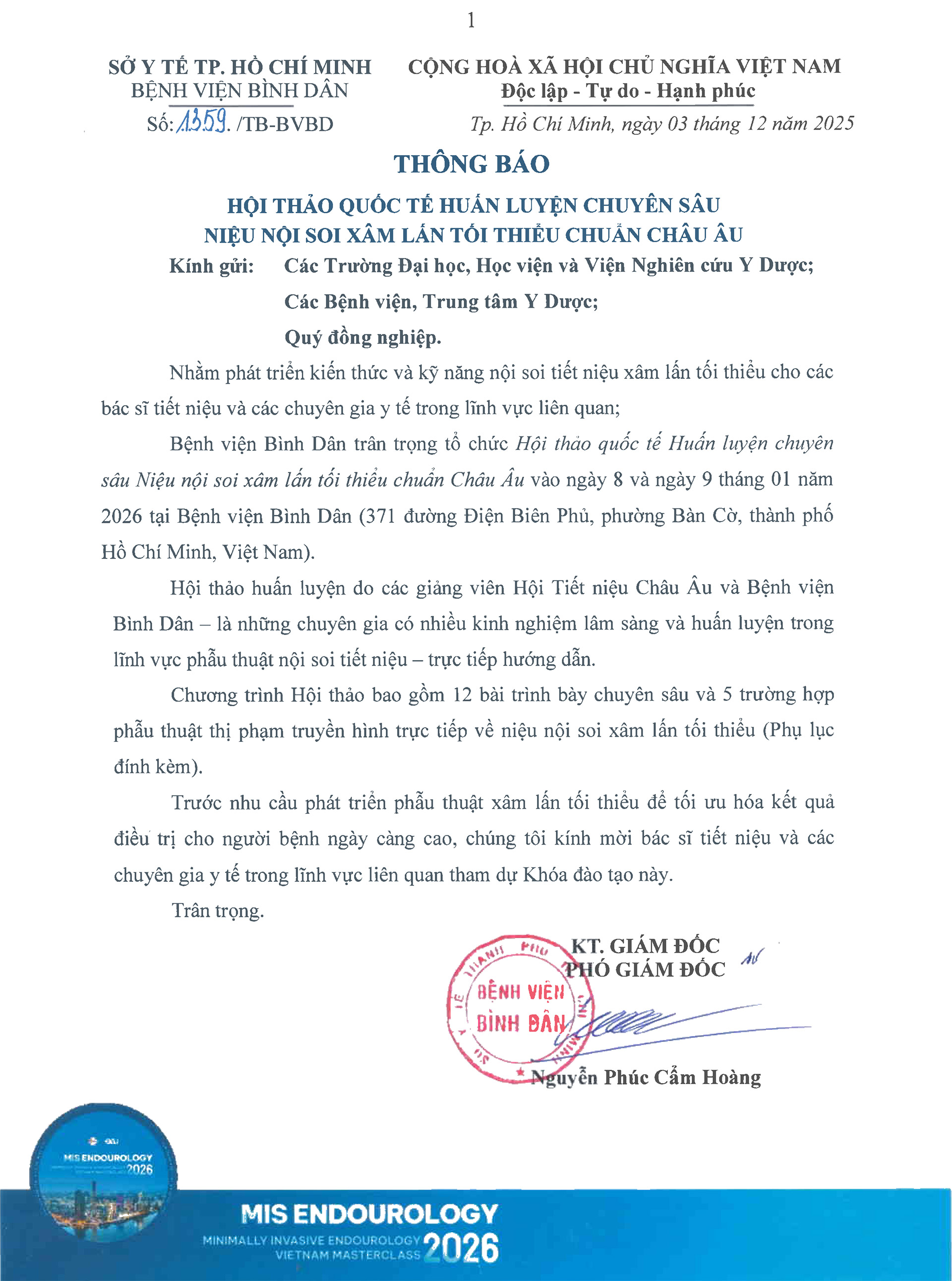 THÔNG BÁO - HỘI THẢO QUỐC TẾ HUẤN LUYỆN CHUYÊN SÂU NIỆU NỘI SOI XÂM LẤN TỐI THIỂU CHUẨN CHÂU ÂU 04-12-2025 11:05:56 GMT +7